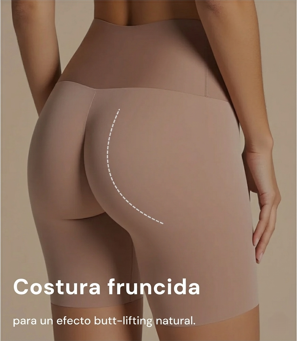 La costura fruncida estratégica realza los glúteos de forma sutil y armoniosa. El diseño crea un efecto visual de elevación inmediata, sin rellenos ni rigidez. Te sientes más firme, proporcionada y segura, con una forma natural que se ve increíble desde cualquier ángulo.