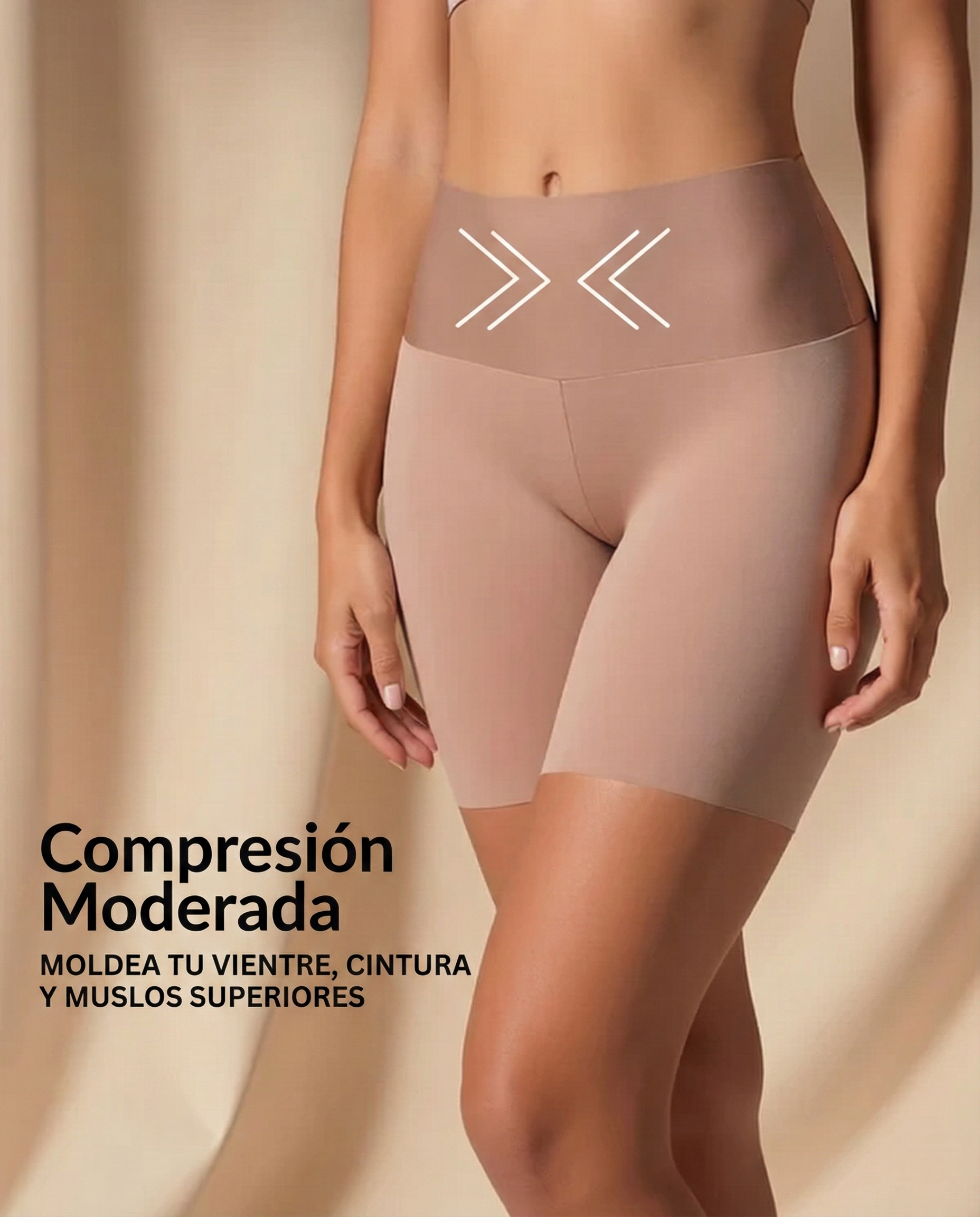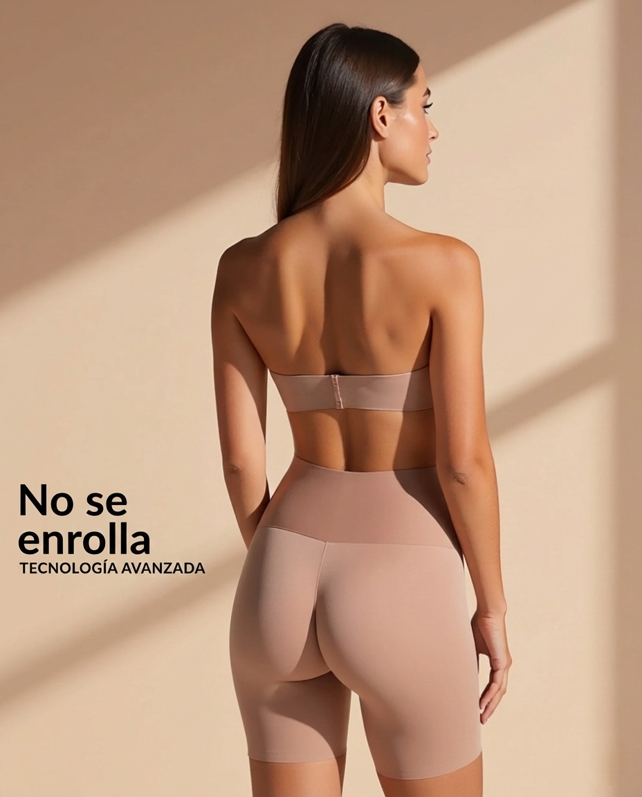 El tejido de alta densidad crea una compresión uniforme que oculta visualmente la celulitis en glúteos y muslos. La textura se ve más lisa desde el primer uso, sin marcar ni endurecer la piel. Te sientes más segura al mirarte al espejo y cómoda al usar prendas ajustadas, con un acabado natural y elegante.